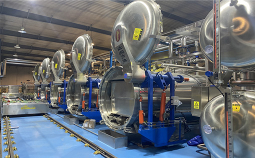 每月可生產(chǎn)殺菌設(shè)備20臺(tái)/套以上,擁有自動(dòng)焊接、切割設(shè)備、折彎設(shè)備等.設(shè)備齊全,殺菌釜、裝籃機(jī)、卸籃機(jī)、 臺(tái)車(chē)、籃筐、托盤(pán)、控制箱、等等配件 的制造和組裝都在桂冠工廠完成,實(shí)現(xiàn) 整機(jī)的調(diào)試和FAT工廠驗(yàn)收,能幫助設(shè)備 “準(zhǔn)時(shí)”啟動(dòng)和運(yùn)行得更快、更順暢。